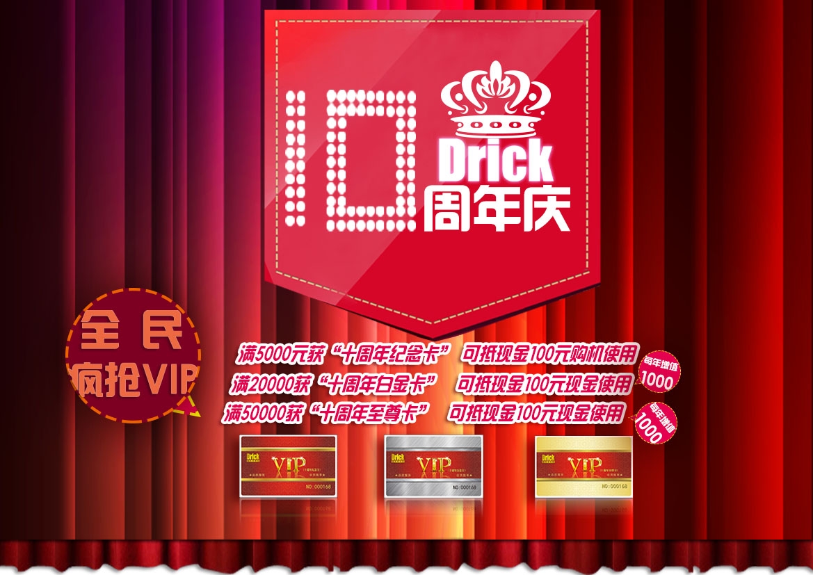 ◆   活動期間,凡在我公司一次性購買設(shè)備滿20000元的,均可獲贈VIP周年紀(jì)念卡白金卡一張。