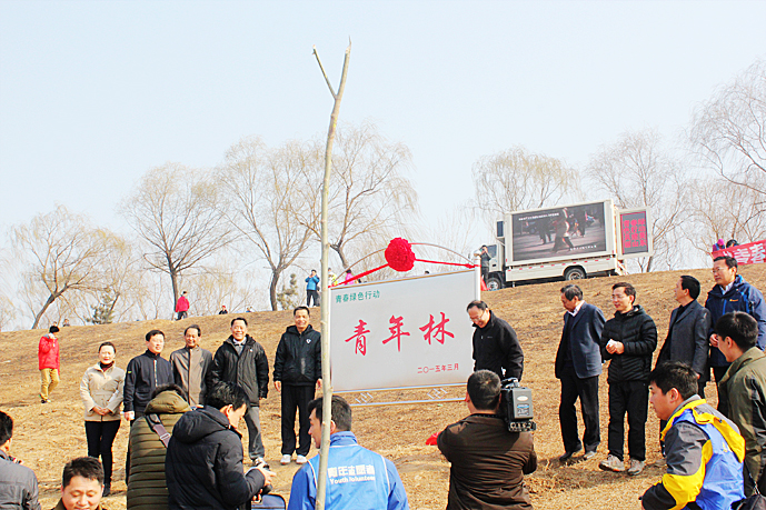 上午9時,段店管理段黃河畔彩旗飄揚,人頭攢動,槐蔭區(qū)委書記李繼民等領導一行出席“青年林”揭牌儀式,并種下了綠色行動的第一棵樹!
