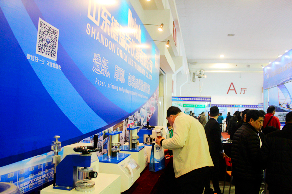 山東(國際)制漿造紙技術及裝備展覽會已成功舉辦了15屆,本次舉辦地點在山東機械設備展覽中心,展會展出面積約20000平米,專業觀眾達到2萬人次,圍繞造紙新技術和節能降耗組織了數場較高水平的技術專題講座。山東德瑞克儀器有限公司攜拉力機、抗壓機、耐破度儀、吸水性測定儀、平滑度儀等十余種新型檢測儀器出展,產品的美觀,穩定,智能化,適中的價格,深得與會客戶的一致認可與好評。