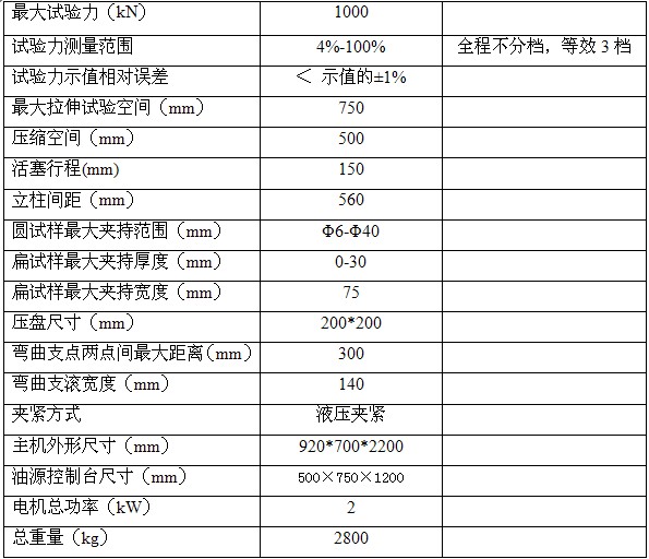 主機(jī)為兩立柱、兩絲杠、油缸下置式,拉伸空間位于主機(jī)的上方,壓縮、彎曲試驗(yàn)空間位于主機(jī)下橫梁和工作臺(tái)之間。測(cè)力儀表采用高清液晶顯示屏,實(shí)驗(yàn)數(shù)據(jù)方便直觀。